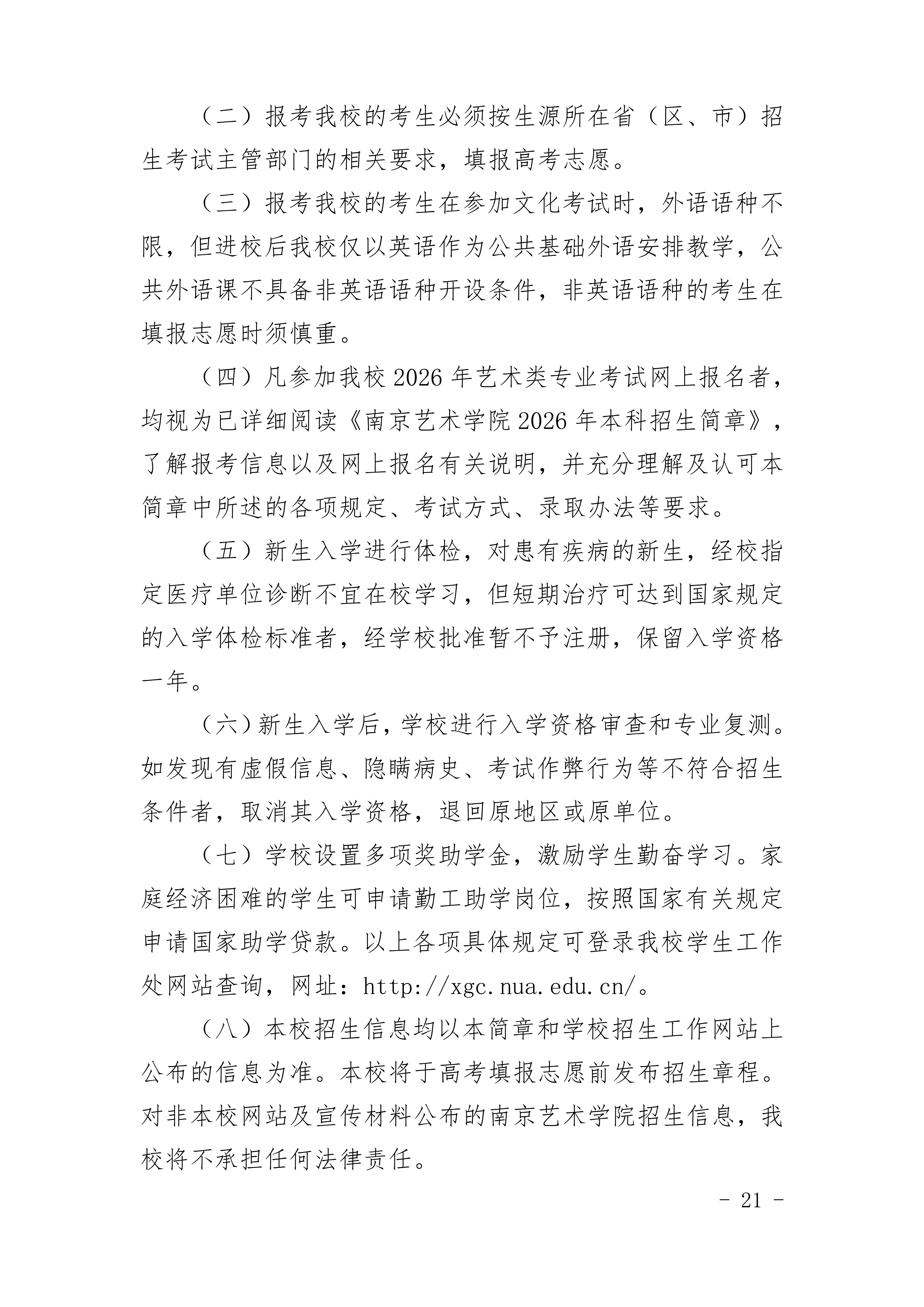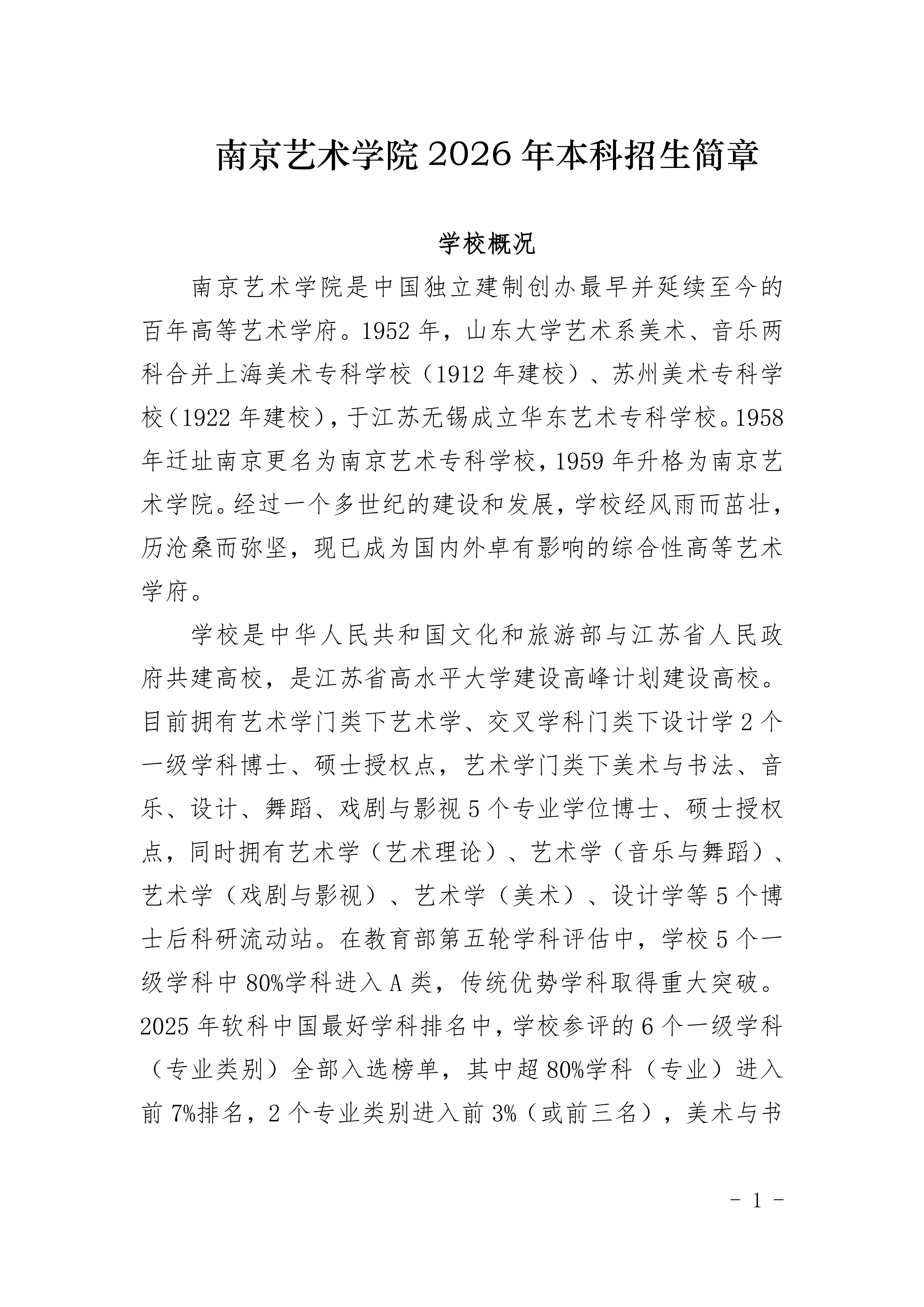 南京艺术学院2026年本科招生简章